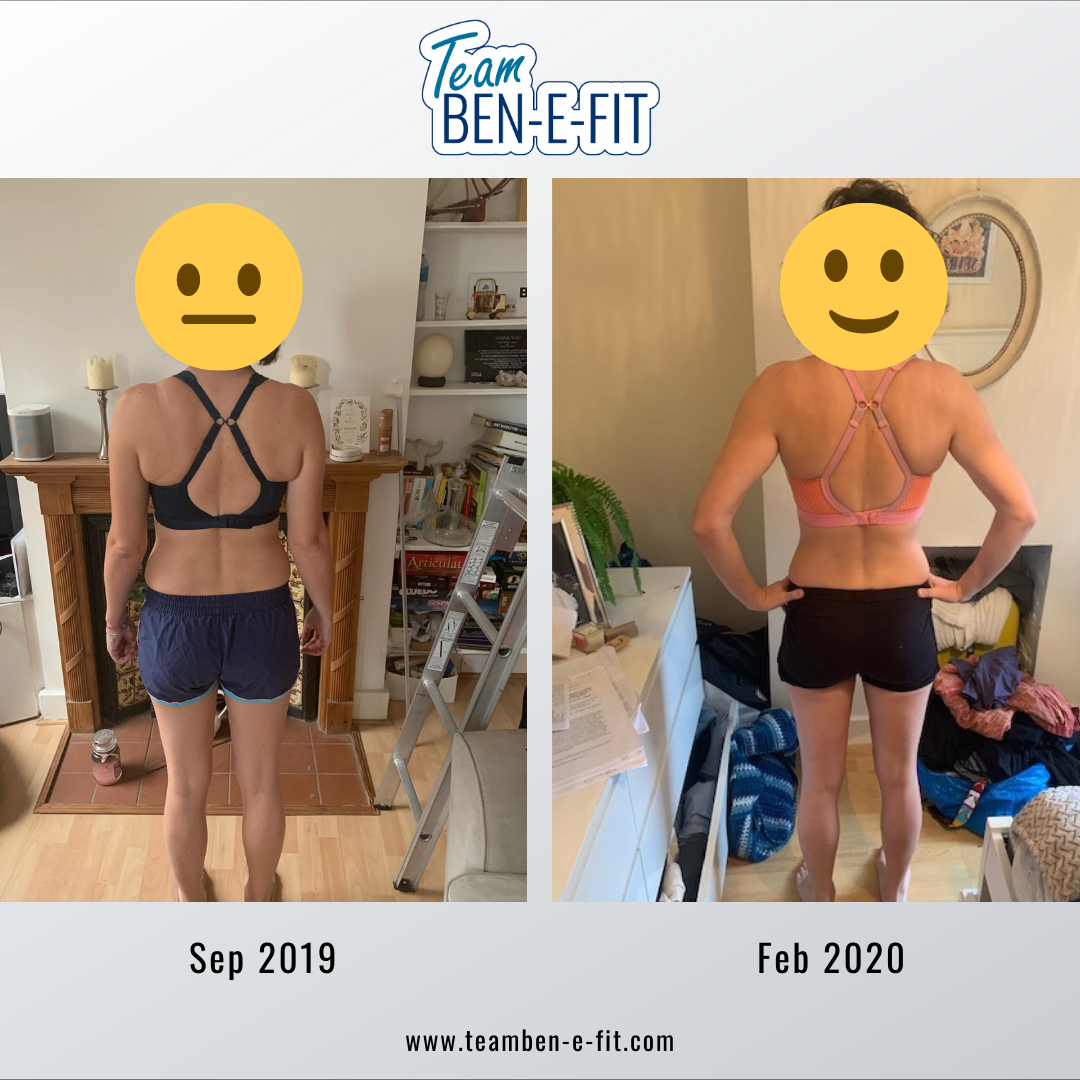 “Also, the reason I started this was because after running marathons my joints were taking their toll. I ONLY ever used the cardio in the gym and you Ben got me hugely out of my comfort zone and into the middle of the weights section. Insane transformation”